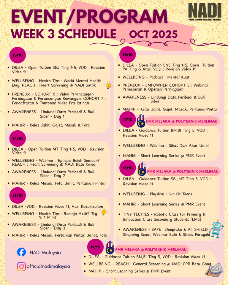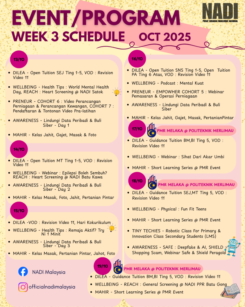 JADUAL PROGRAM MINGGU KE-3 OKTOBER